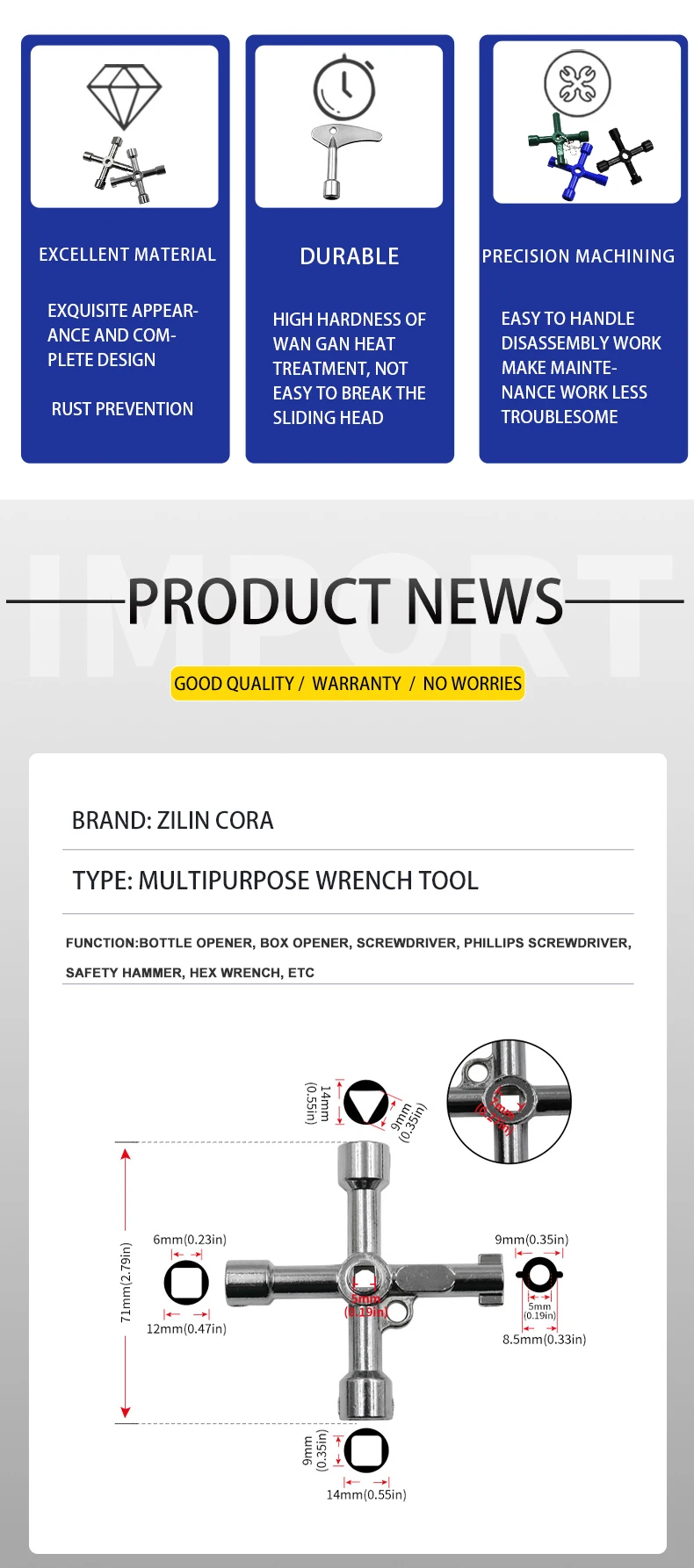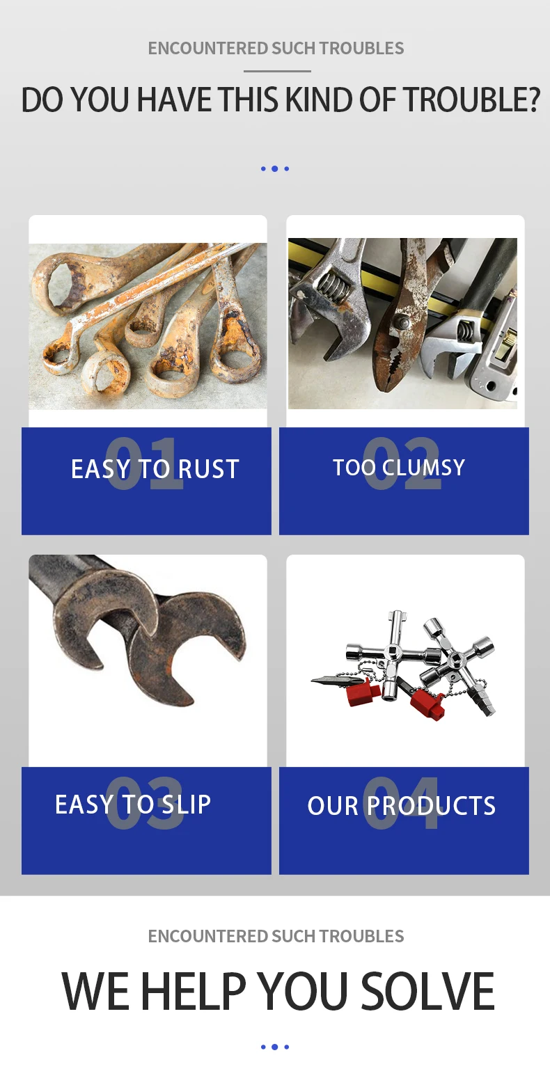 4in1 Electric Cabinet Elevator Hex Key Wrench Watermeter Valve Inner Triangle Wrench Multi-purpose Screwdriver Tool Set Portable