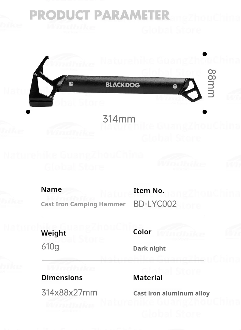 Naturehike BLACKDOG Outdoor Hammer Multi-functional Mountaineering Hiking Camping Tent Peg Stake Mallet Ultralight Iron Tools