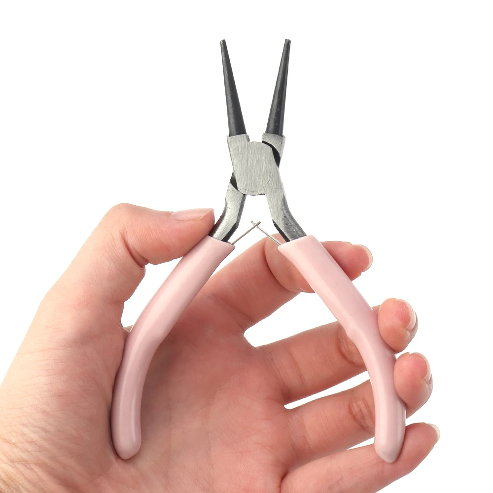 Portable Pink Stainless Steel Pliers Tool Set Jewelry Making Round Nose Plier Tweezers Kit for Handcrafts Beading Sewing DIY Supplies