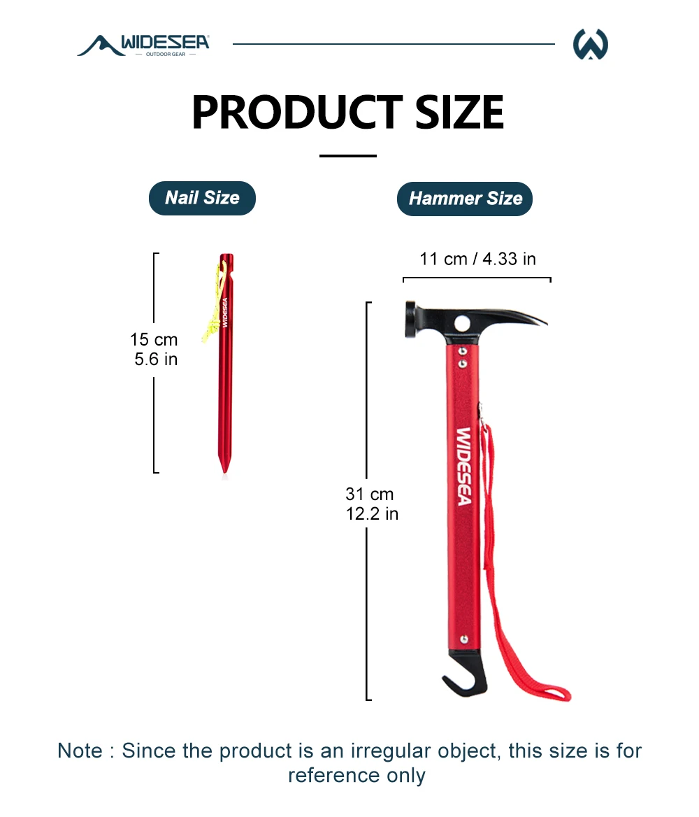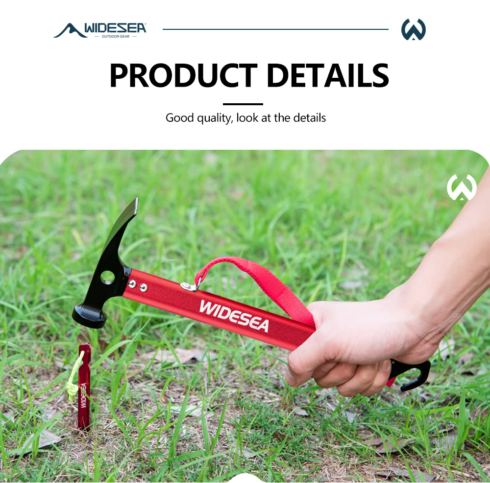 Widesea Aluminum Alloy Camping Nail Hammer Strong Durable Easy to Carry Multifunctional Hammer for Outdoor Tent Staking Backpack